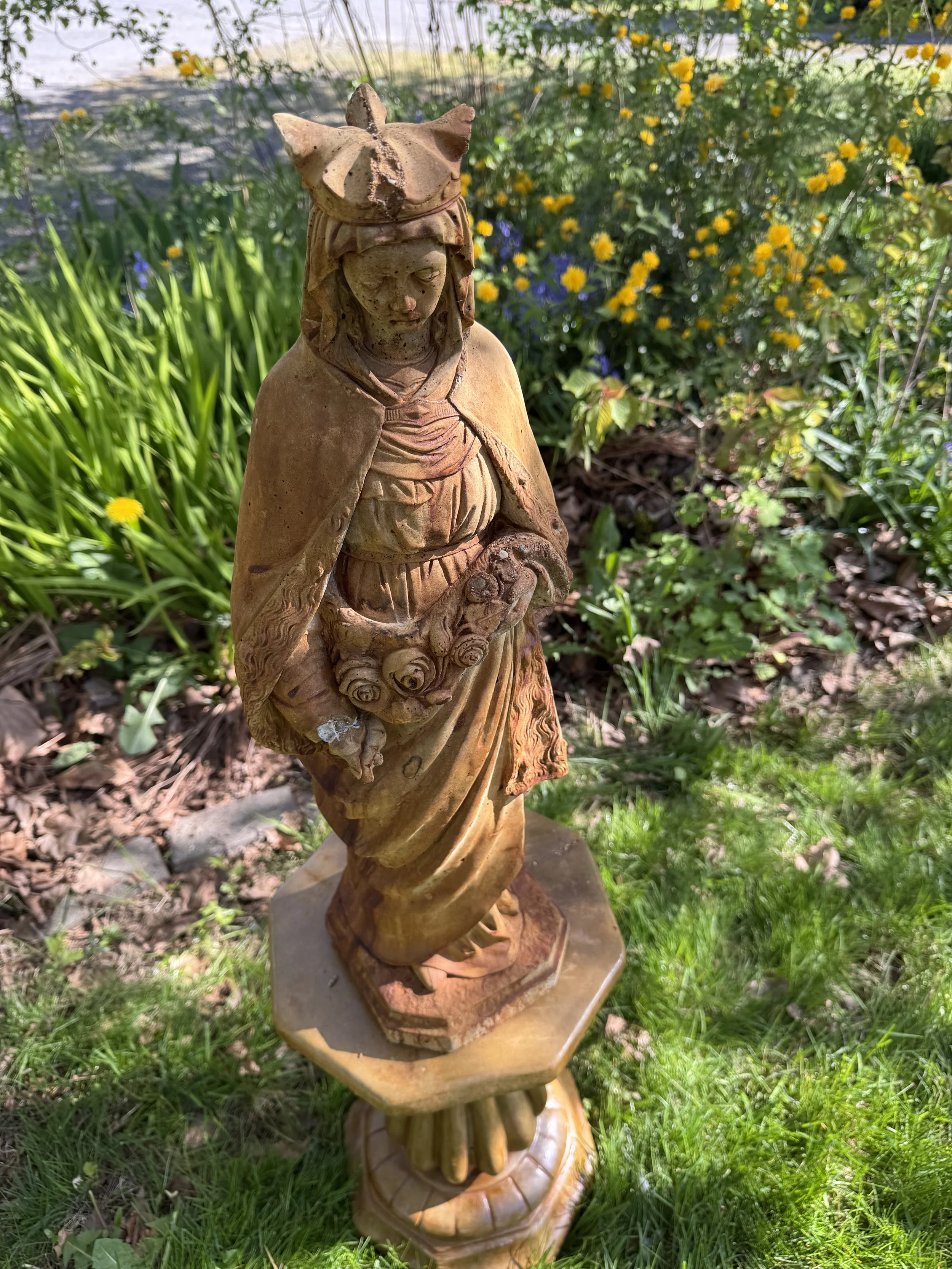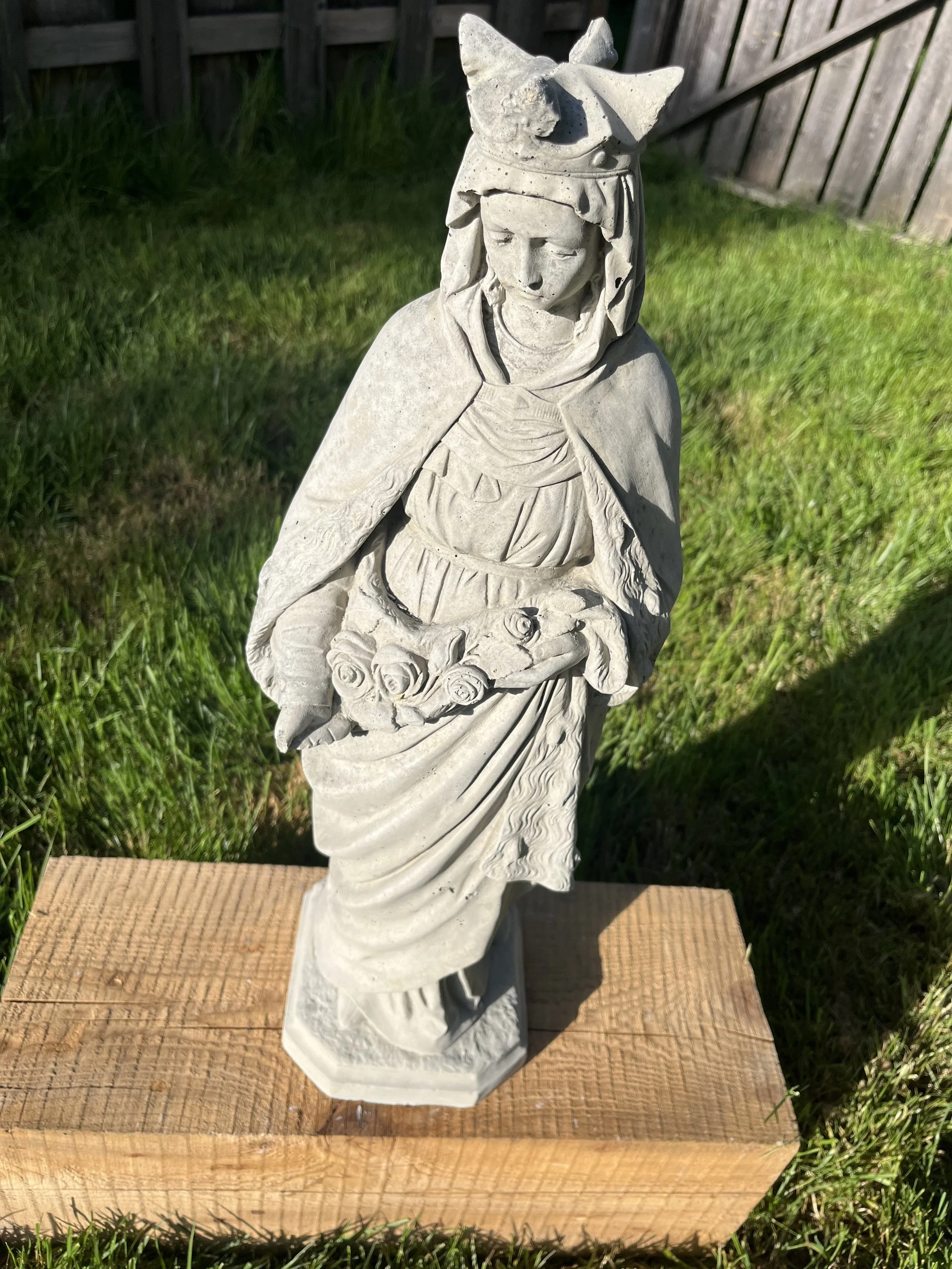 Bring timeless beauty and spiritual warmth to your garden, patio, or entryway with our handcrafted Saint Elizabeth statue. Standing 24 inches tall and weighing 30lbs, this solid concrete piece captures serene detail and graceful posture, perfect for any sacred or peaceful space.