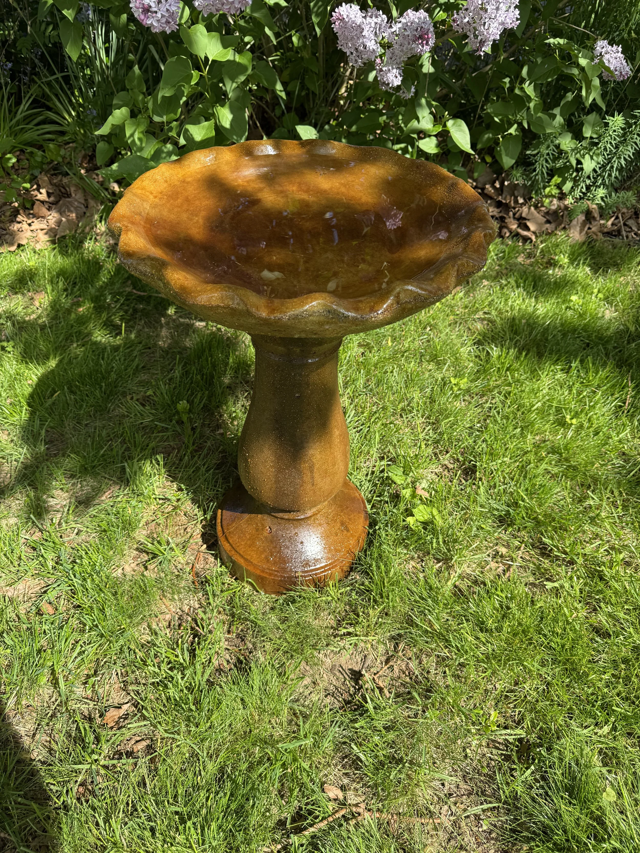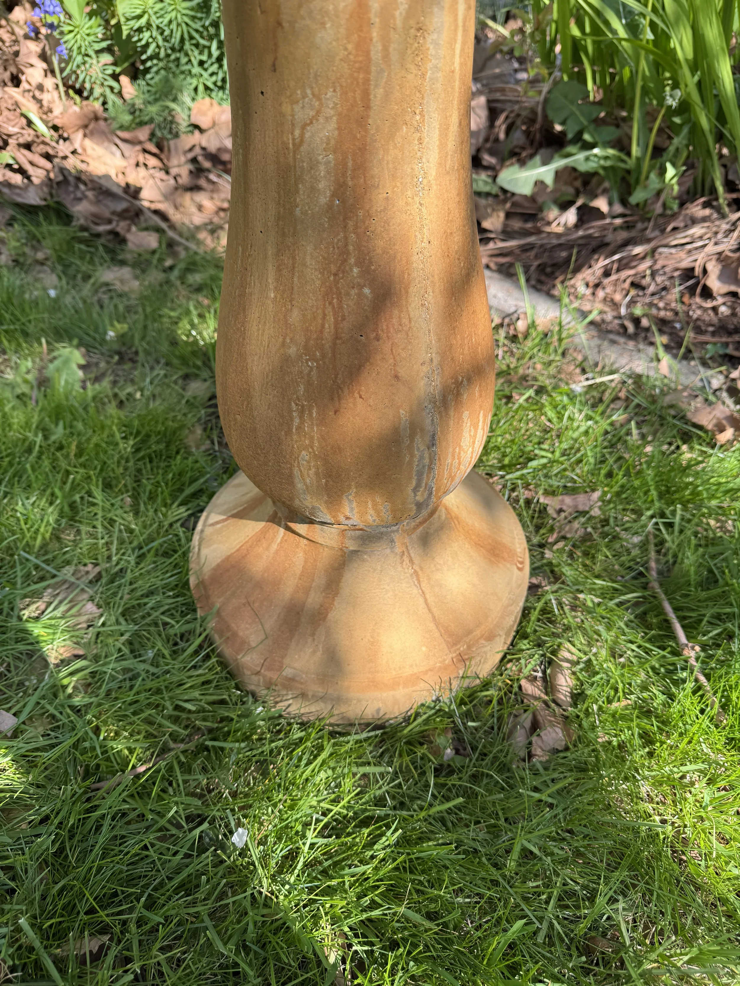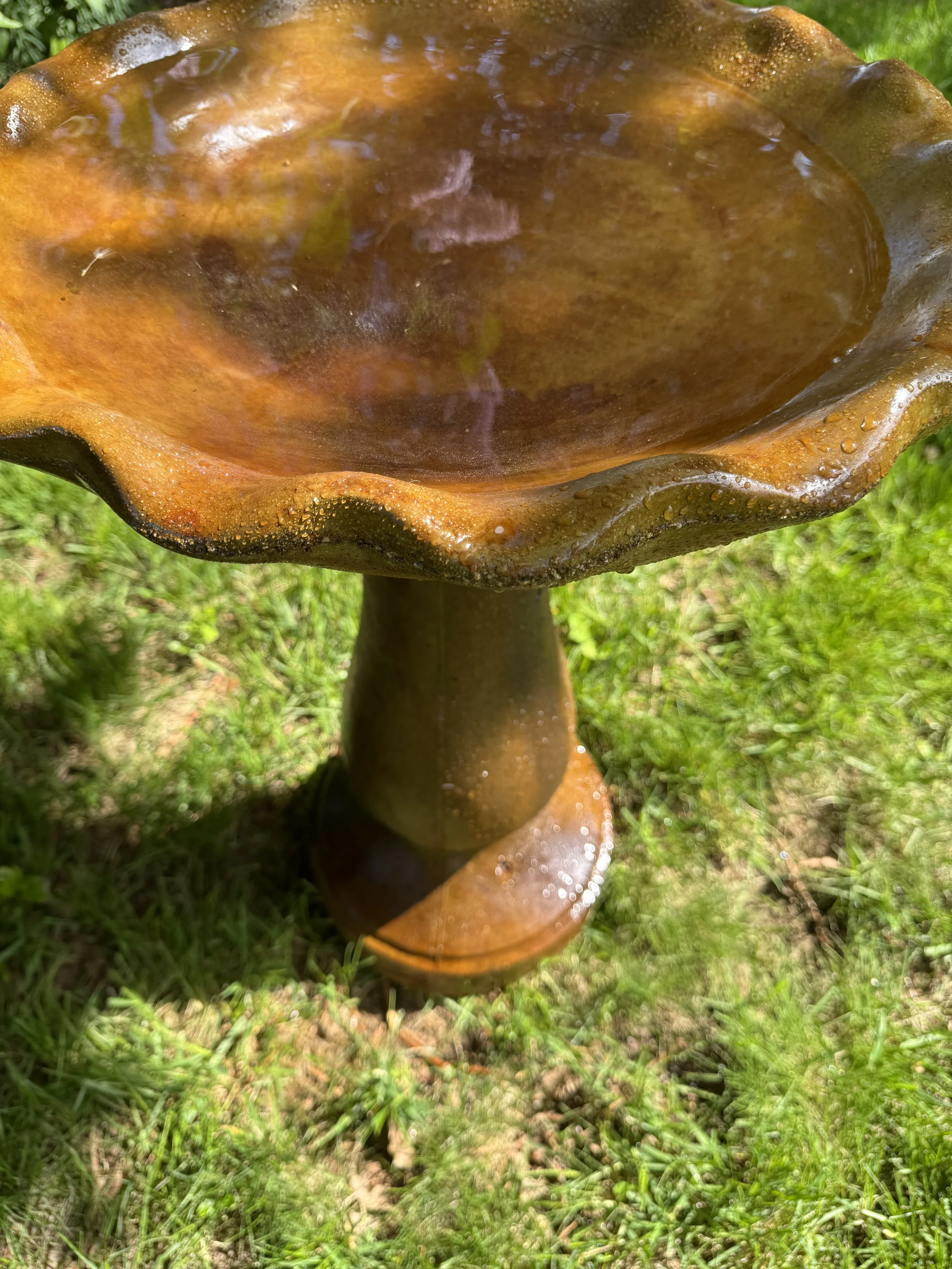 Comes in two pieces, can be used with pedestal, or simply a ground bird bath.